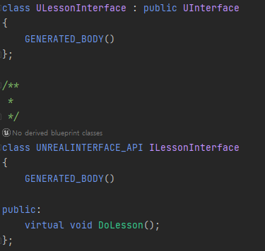 4. 언리얼 C++ 인터페이스는 추상 타입으로 강제되지 않고, 내부에 기본 함수를 구현할 수 있습니다.